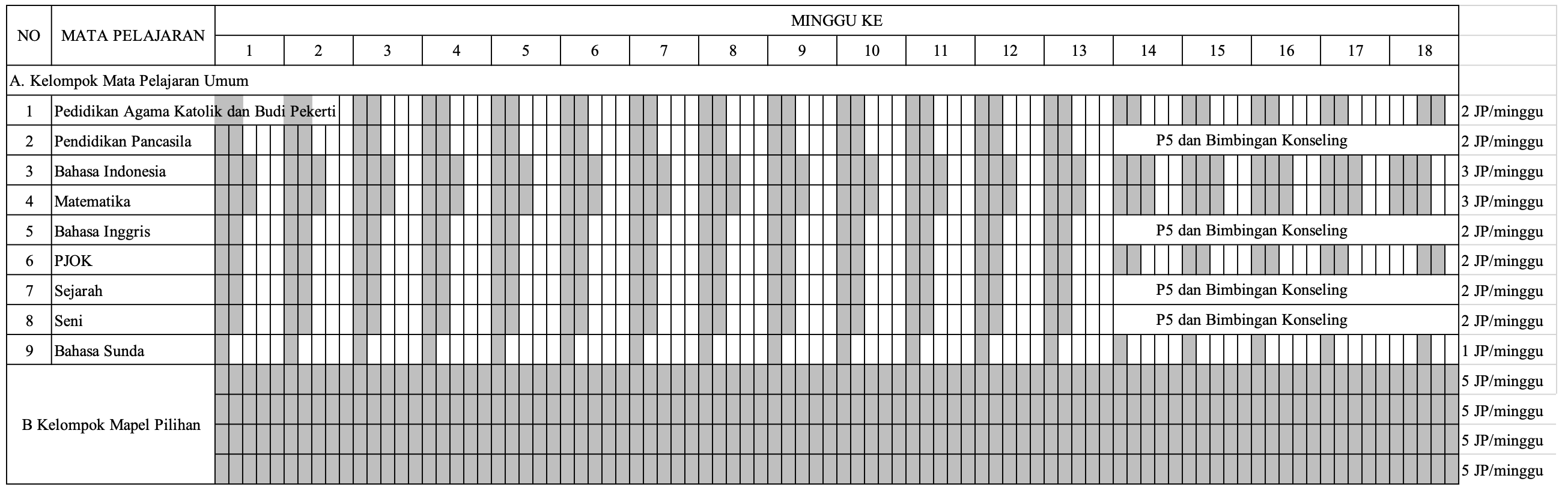 Pengaturan Jam Pembelajaran Fase F (Kelas XI) per-semester